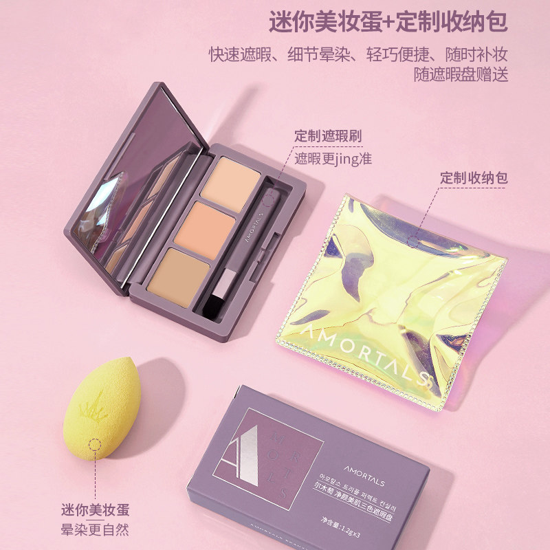Sweep flawless Ermu grape concealer to cover acne marks waterproof long-lasting concealer repair volume one three-color concealer disc
