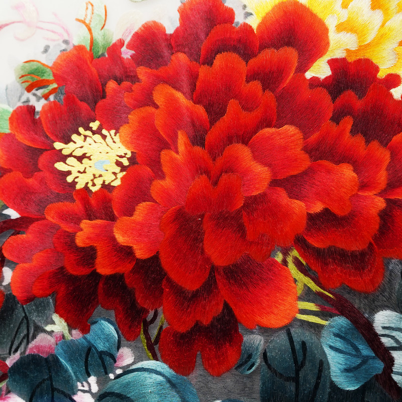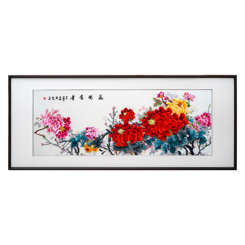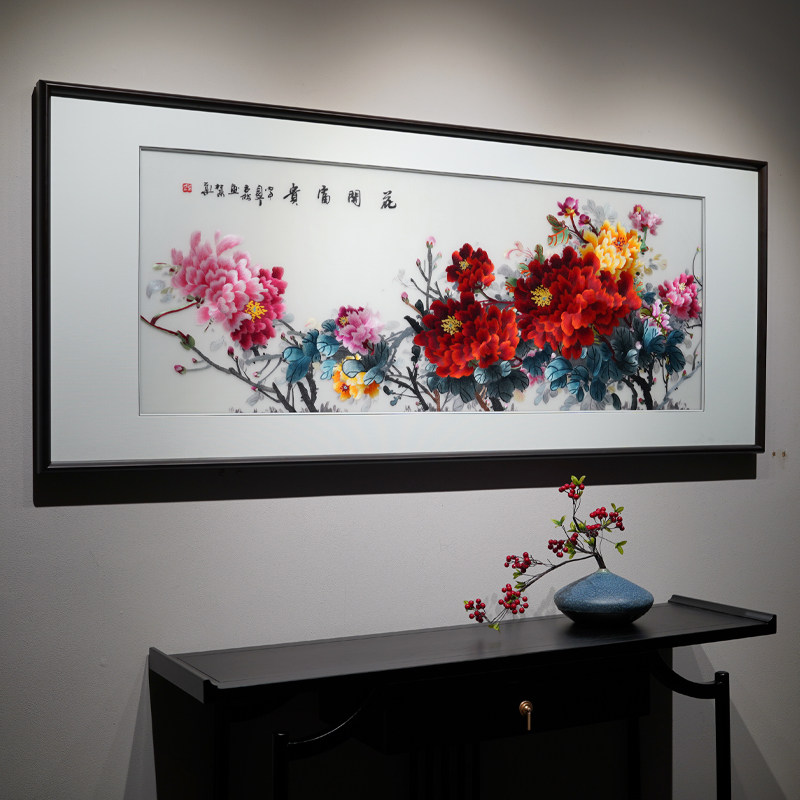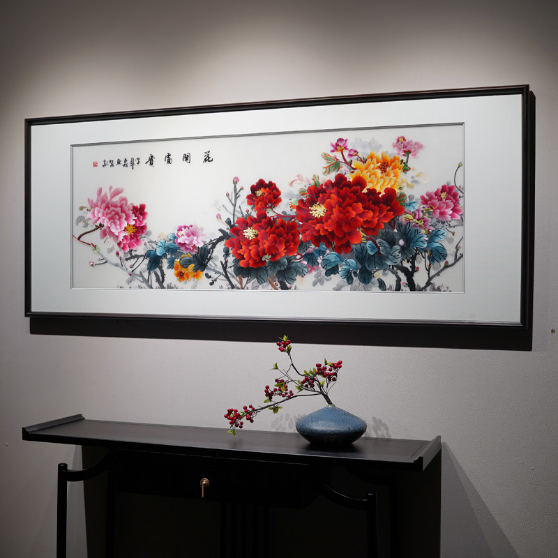 New Chinese style blossom rich atmosphere peony solid wood border pure handmade Su embroidery living room study room art hanging painting