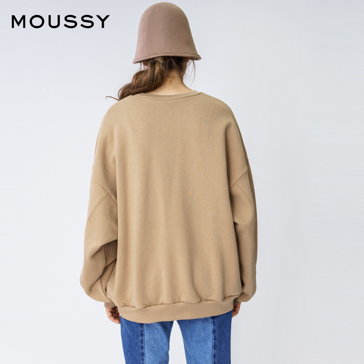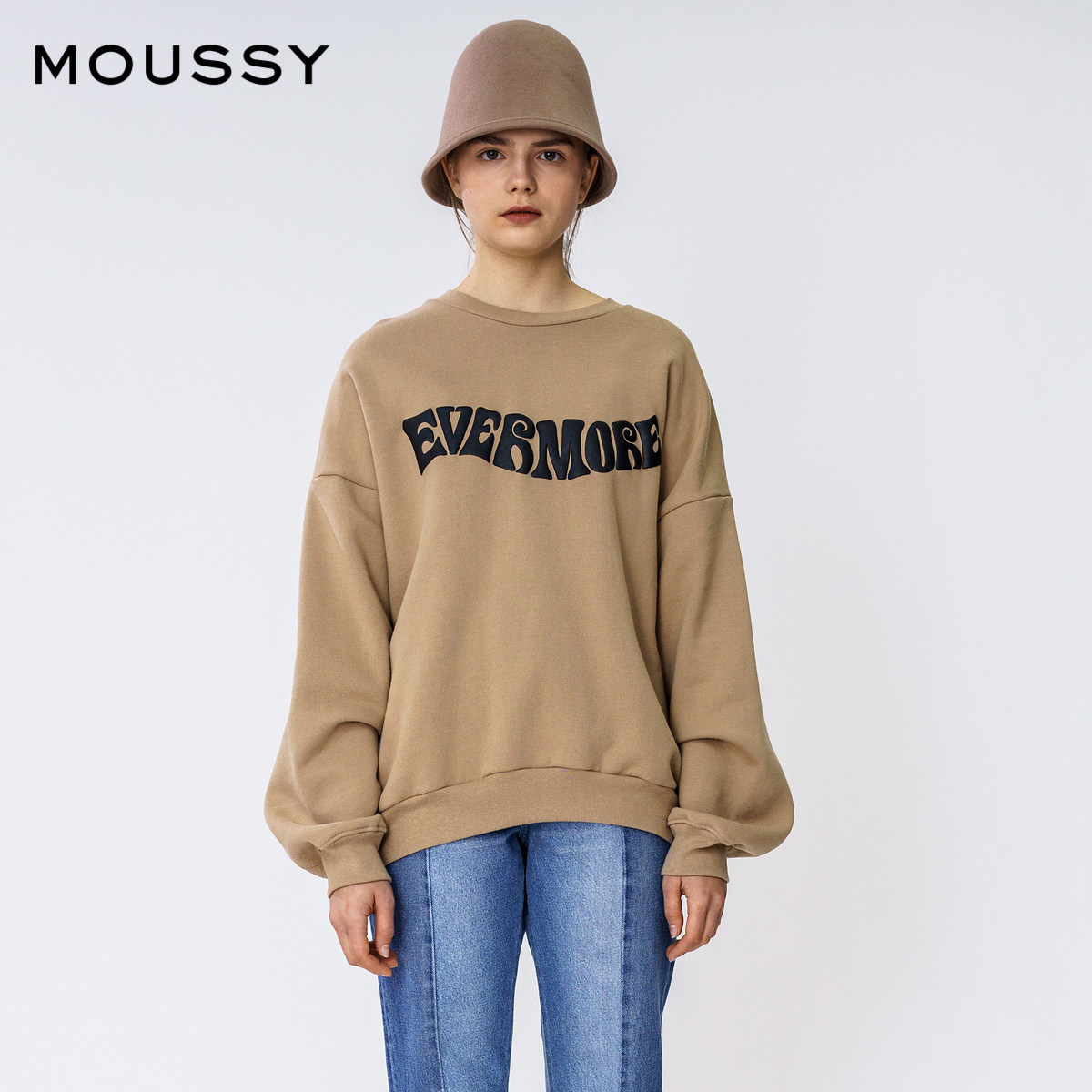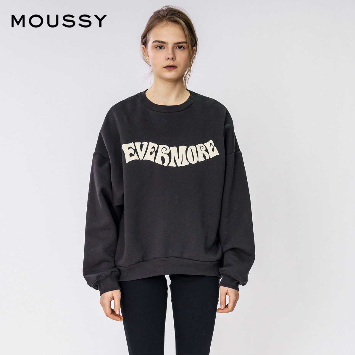 MOUSSY Spring and Autumn new round neck letter offset printing shoulder loose sweater female 010DA790-6080