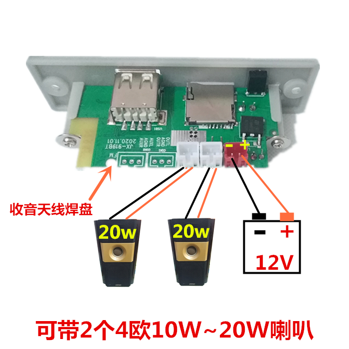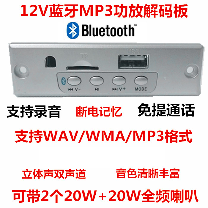 12V with power amplifier 20WMP3 decoding board Music hands-free call board with Bluetooth stereo player