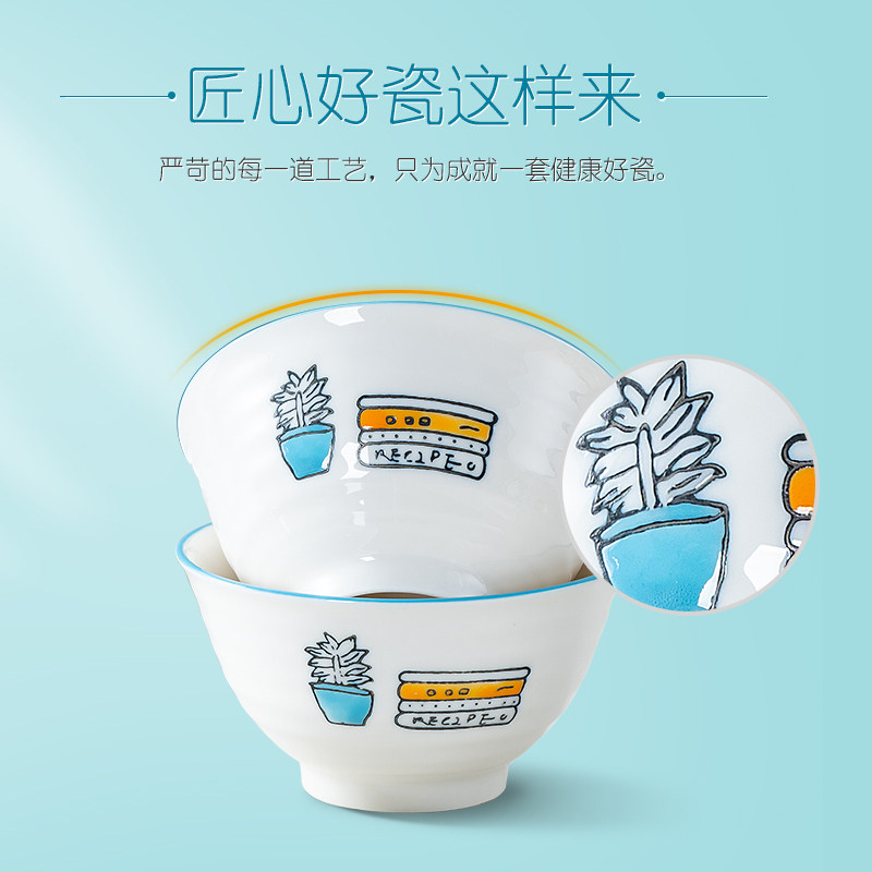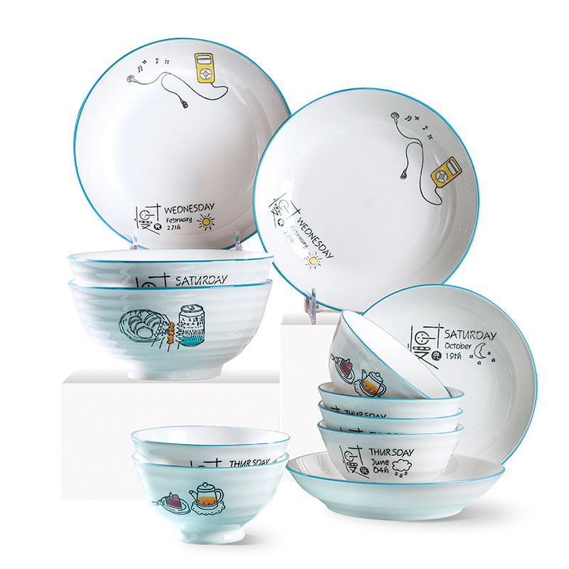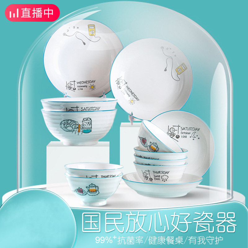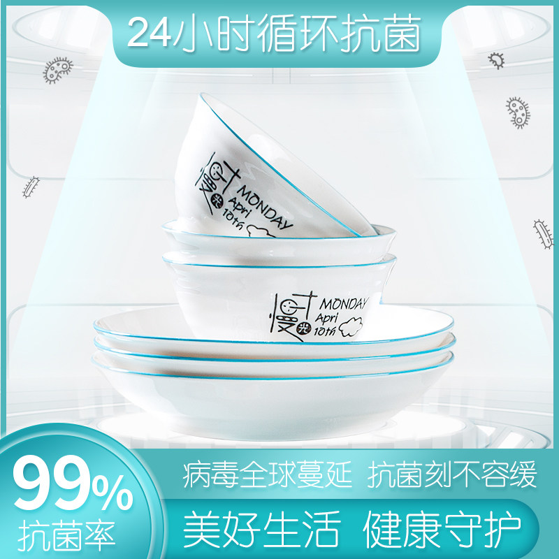 Antibacterial ceramic tableware rice bowl light luxury dishes set household combination soup noodles large bowl ins wind plate microwave oven
