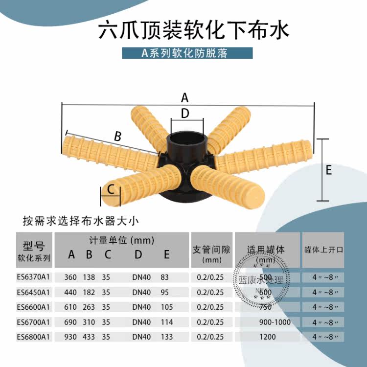Top 6 claws ES6370A1 softening 500 Top 6 claws ES6700B2 filtering 900-1000 Top 6 claws ES6450A1 softening 6