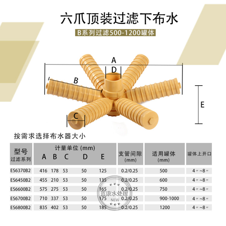6 claws 12 claws top-mounted water distributor quartz sand activated carbon filter water softener under the water distributor water purification treatment