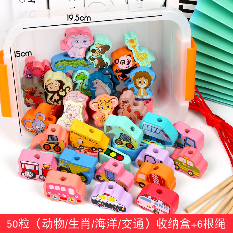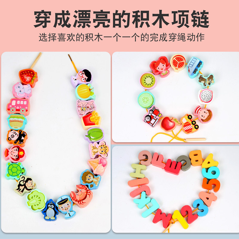 String of beads baby boy wearing building blocks 1-2-year-old male girl preeminants to teach big grains 3 young children toys early