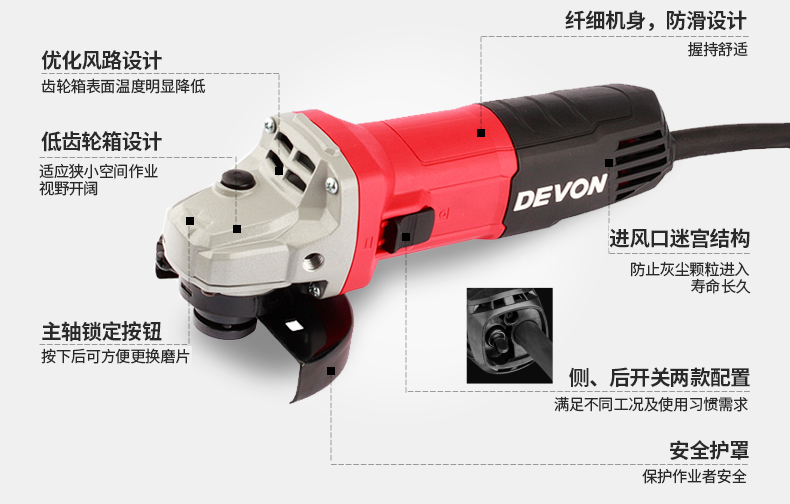 Thin handle angle grinder has DEVON cutting machine multi-functional grinding and polishing machine power tool 2835 steel