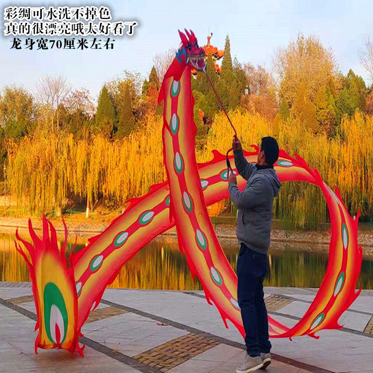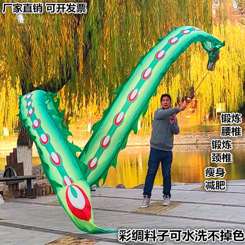 Square fitness dragon flinging dragon dance dragon ribbon flinging dragon color stripe beginner adult middle-aged and elderly gilding dance dragon head shaking dragon