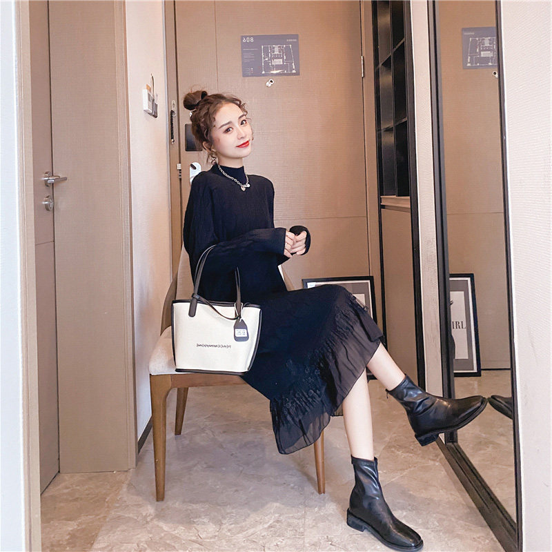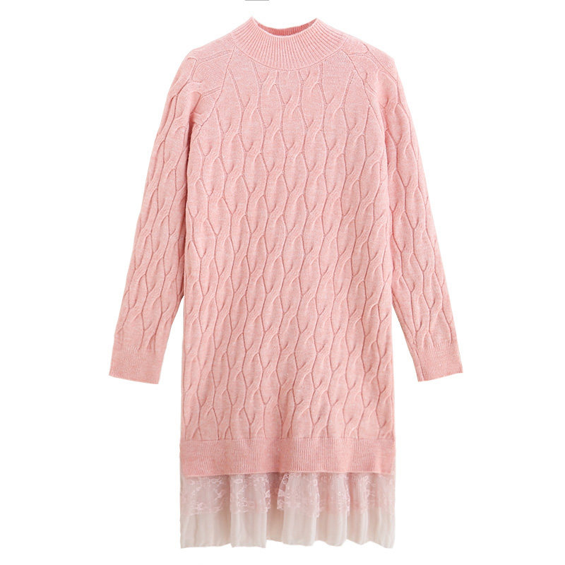 Maternity wear autumn and winter wear 2021 new lace stitching maternity sweater mid-length knitted dress maternity skirt women