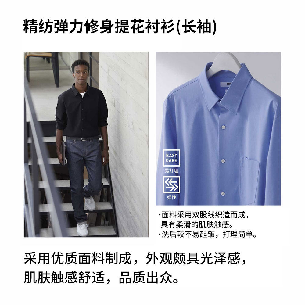 Men's Worsted Stretch Slim Fit Jacquard Shirt(Long Sleeve Business Career Uniqlo High Efficiency Shirt) 436339