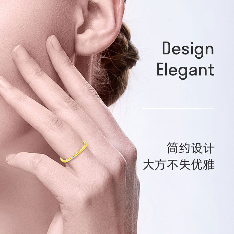 Square 18k gold small square ring drill ring female fashion personality brief Delicate Wedding Anniversary Valentine's Day Gift