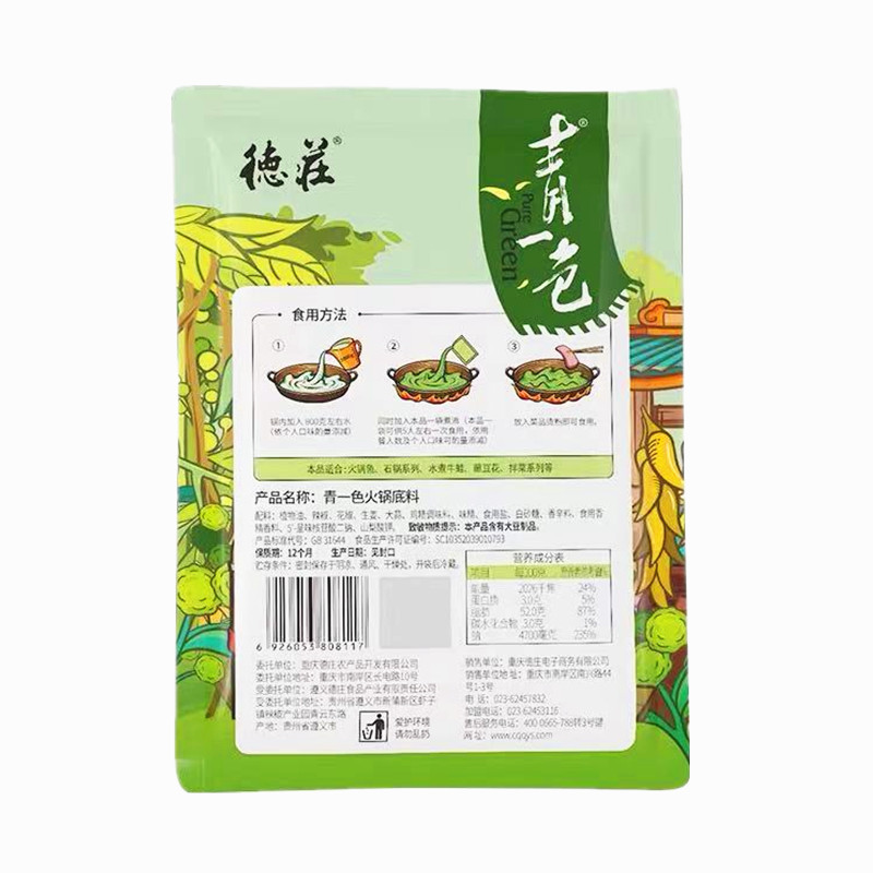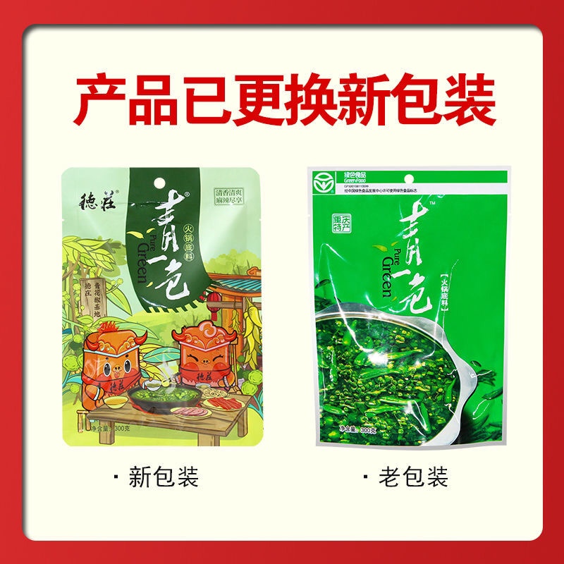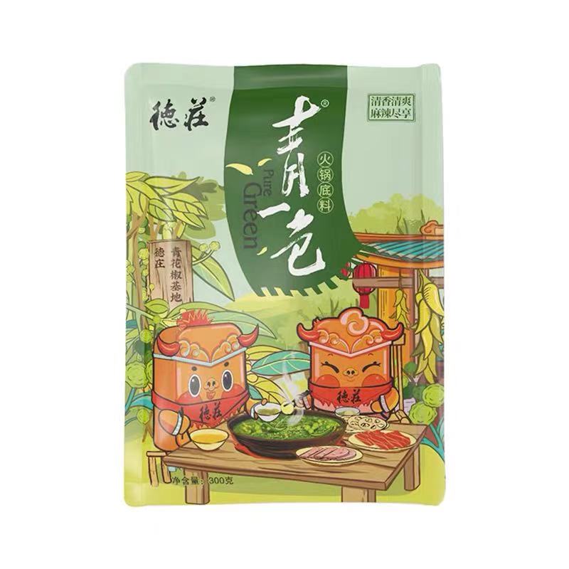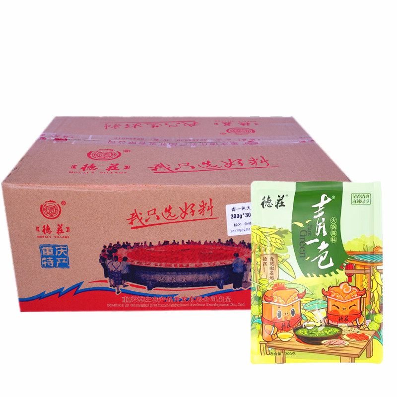 Whole box Chongqing Dezhuang Qingyi Hot Pot Soup Bottom 300gX30 Bag Green Pepper Green Pepper Hot Pot Seasoning