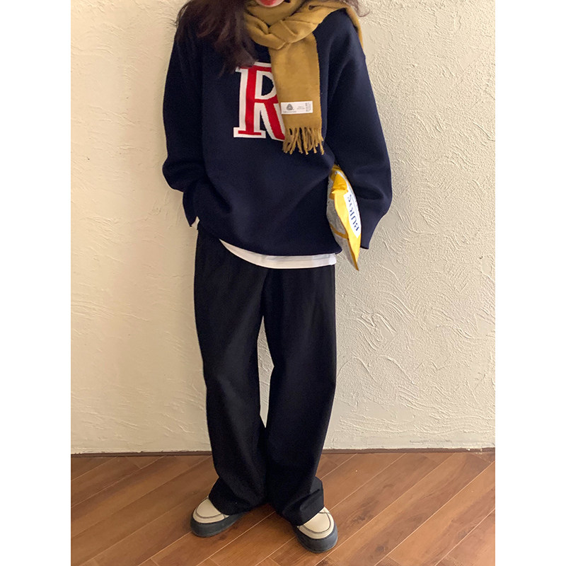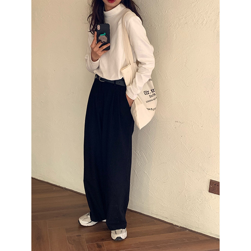 RAINY Homemade Autumn Winter New Straight Drum Casual Long Pants High Waist 100 Hitch Slim Temperament Wool Suit Broadlegged Pants