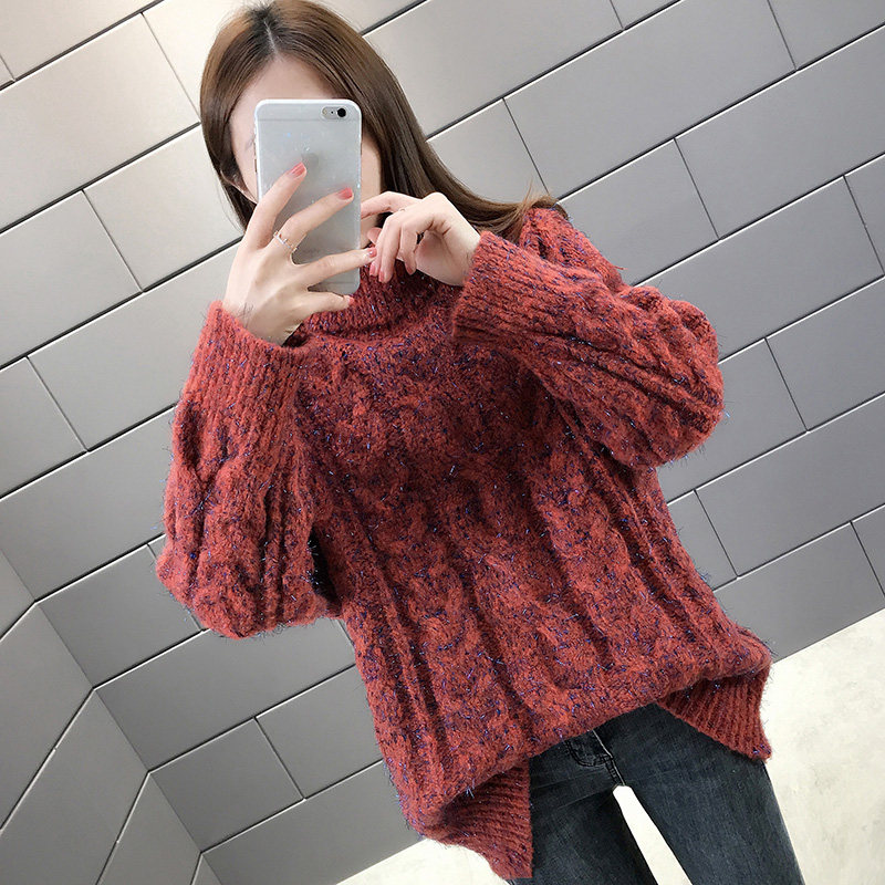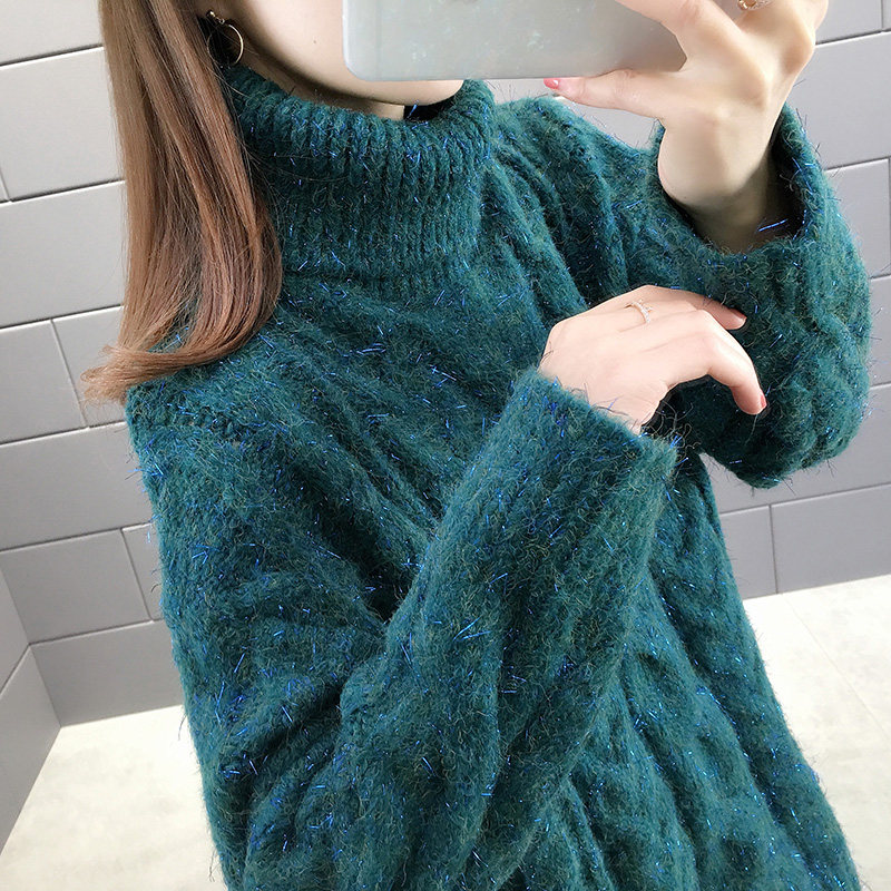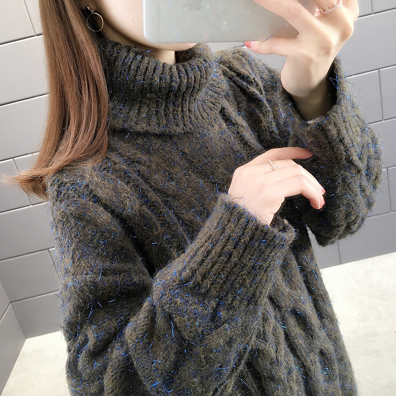 High collar sweater female medium long version 2020 autumn and winter new women's clothing relaxed outside wearing lazy wind thickened knitted blouses