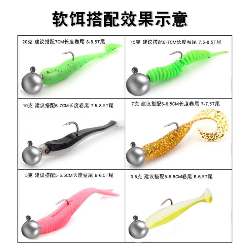 Lead head hook 5 0g (25 pieces) Green back Yellow belly 6 5cm (60 pieces) delivered containing box lead head hook 5 0g (25 pieces) orange back white belly 6 5cm (60 pieces)