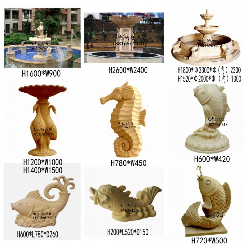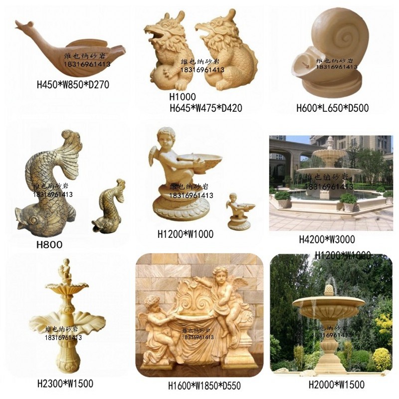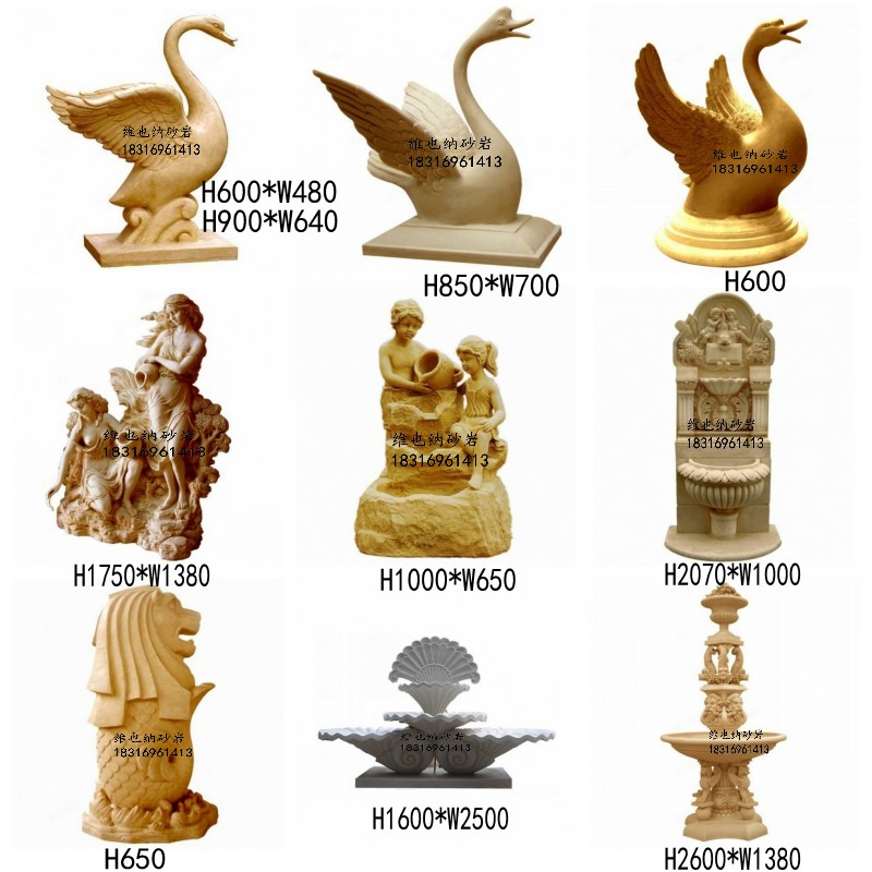 Custom sandstone fiberglass fountain relief Outdoor landscape garden fountain Swan elephant villa background wall decoration