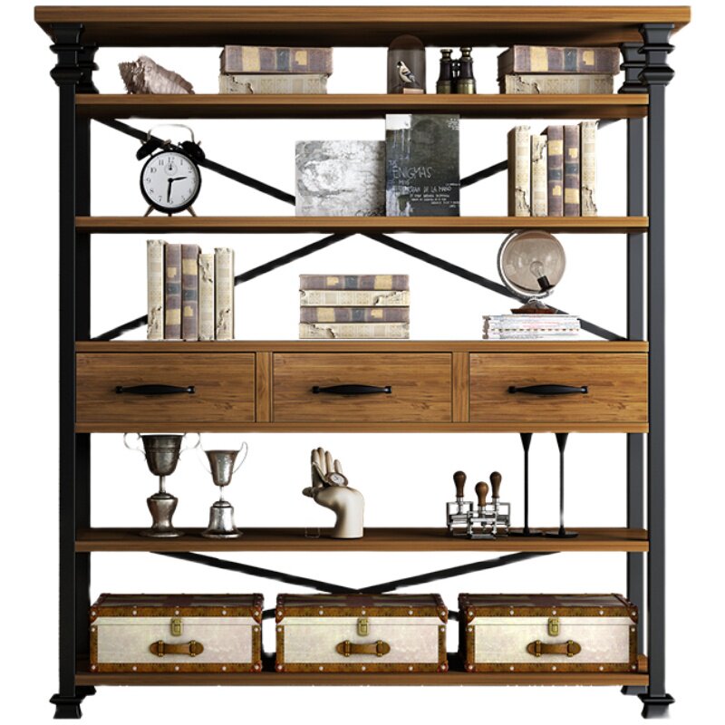 LOFT American retro solid wood bookshelf drop subway art rack multi-layer storage rack living room full wall bookcase customization