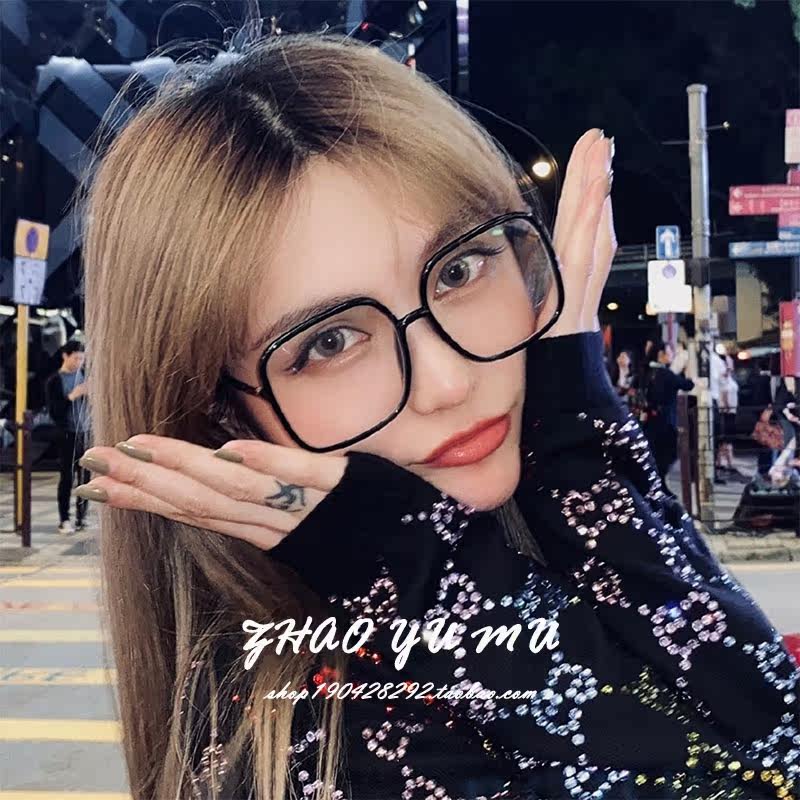 Xiaohongshu transparent glasses female ins style square plain glasses frame female big face slimming with degree myopia female