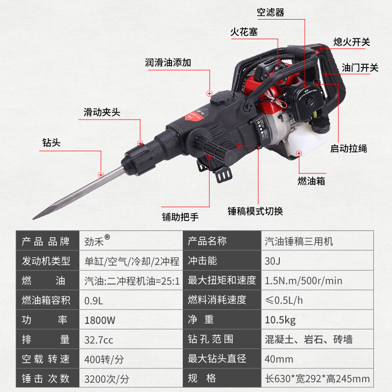 Multifunctional gasoline pickaxe hammer drilling gasoline drilling machine crushing small four-stroke impact drilling open mountain oil hammer rock drill