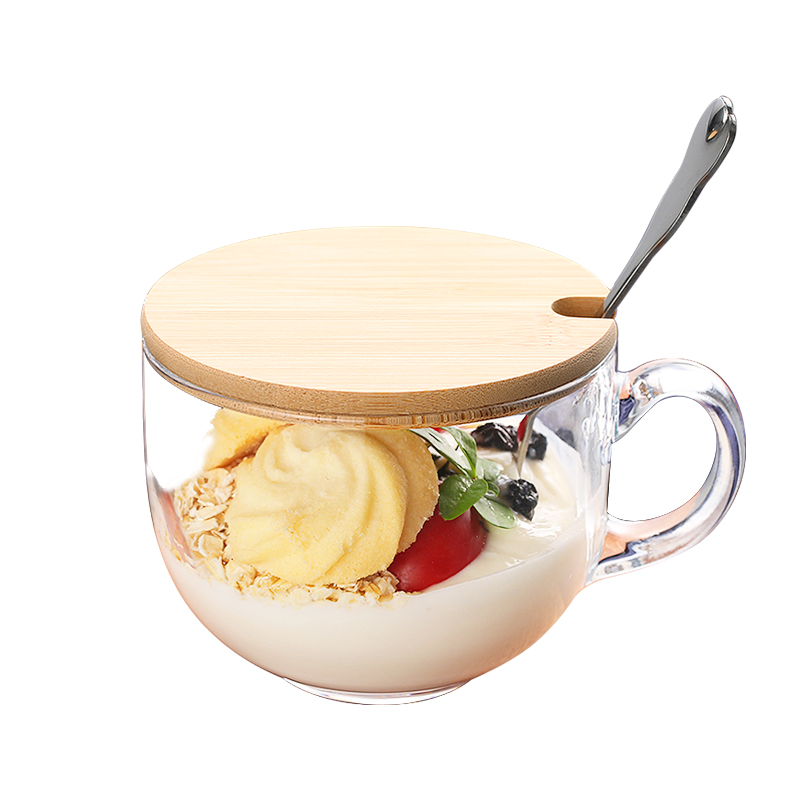ins brown glass oatmeal breakfast cup heat-resistant large-capacity milk cup coffee cup with lid spoon mug