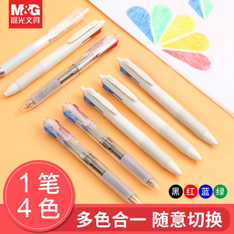 Morning light Multi-color ballpoint pen by pressing color pressing four color pen students with notes handbooks special press-moving oil pen cute teenage girl 0 5-functional student special