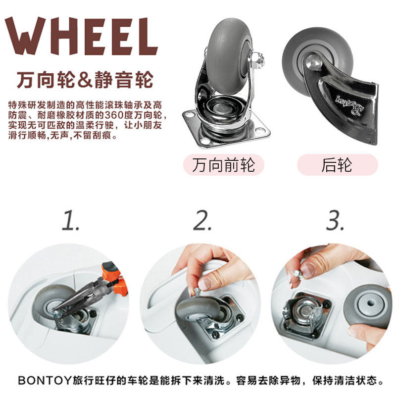 DIY sticker 1 front wheel 1 rear wheel 1 steering handle Black steering handle Coffee color steering handle base Black handle Gray handle Black handle Pink handle Light yellow