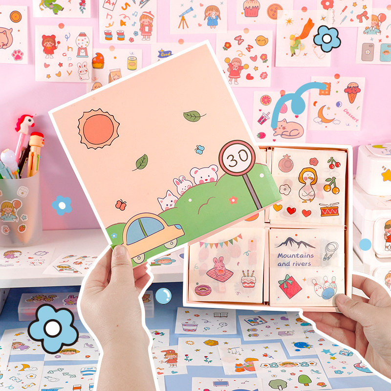 100 boxes of boxed stickers Kits Hand Ledger Tools Material Teenage Hearts Cartoon Cute Creative Handbooks Ben Subdecoration