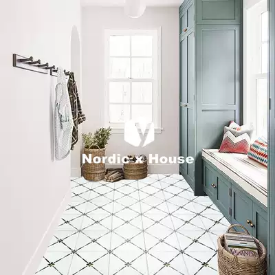 Nordic retro leather grain bed and breakfast tile wall and floor tile Dining room powder room non-slip brick balcony flower tile 200200