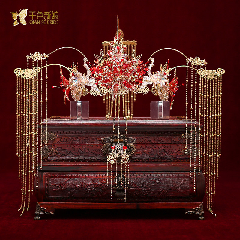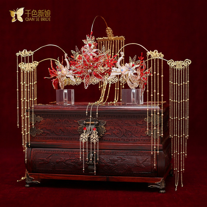 Bride Xiuhe clothing ancient costume headdress new wedding Chinese ancient style hair accessories wedding dragon and phoenix hanging atmosphere Su Yaoyue