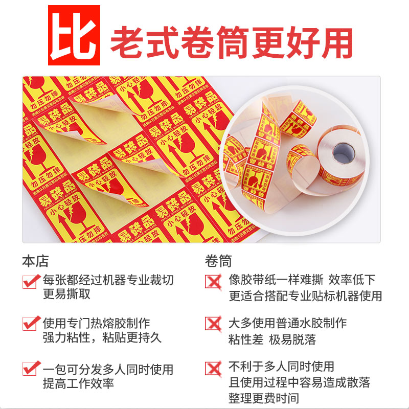 Fragile label sticker courier items carefully take lightly do not press the anti-unpacking packaging large anti-fall warning words prompt disposable sticker