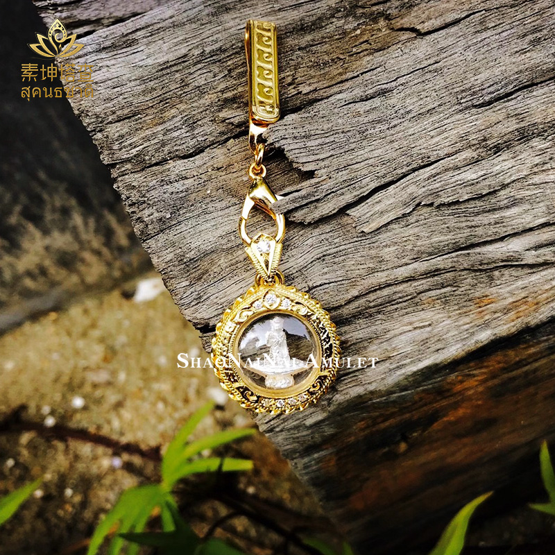 Thailand Buddha Brand Real Dragon Po Rain Goddess Hand Necklace Gold Shell Pendant