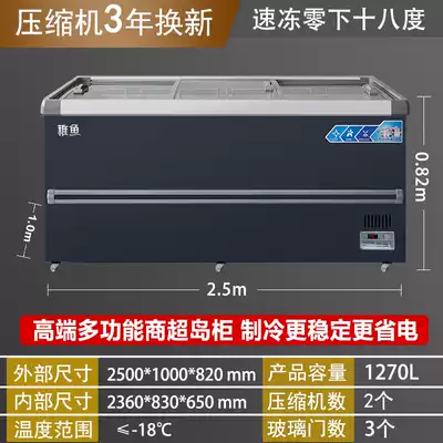 Ice cream freezer display cabinet Commercial large-capacity horizontal ice cream freezer Glass door island cabinet fresh and frozen dual-use