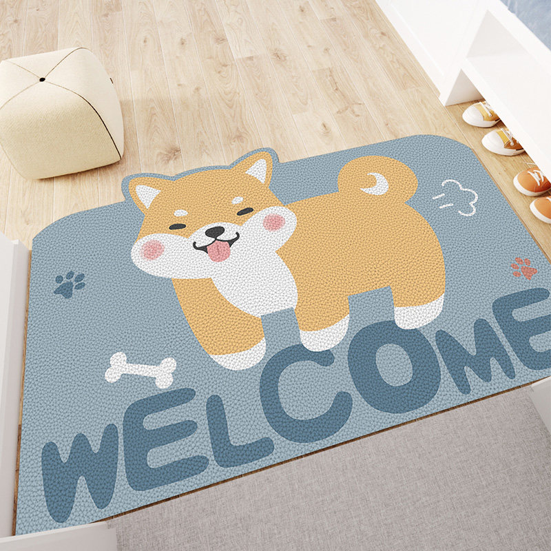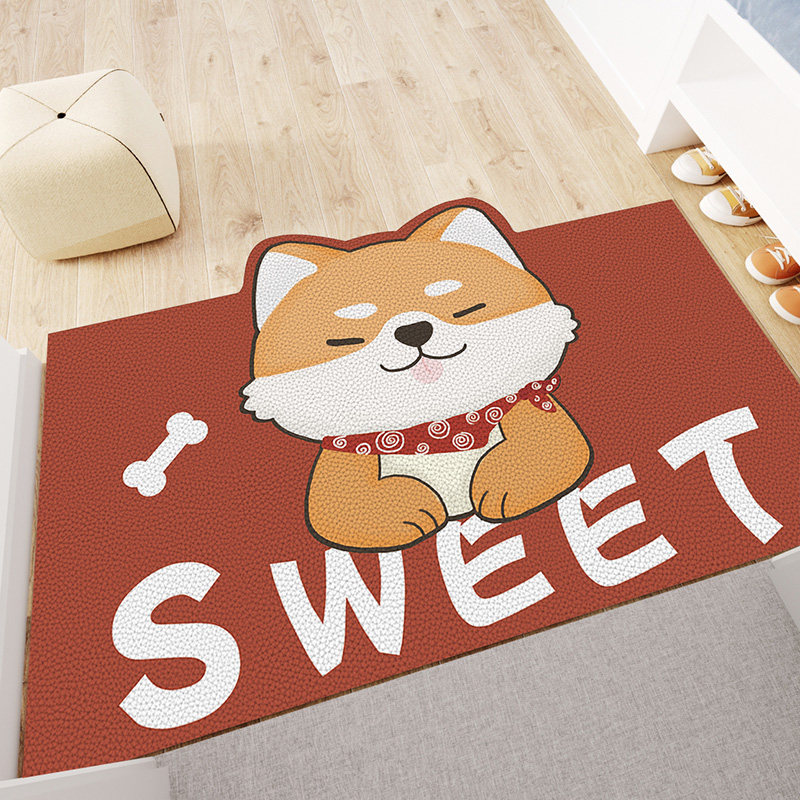 Cartoon pu entry door can be scrubbed PVC floor mat entry door household leather thin carpet creative foot mat wash-free