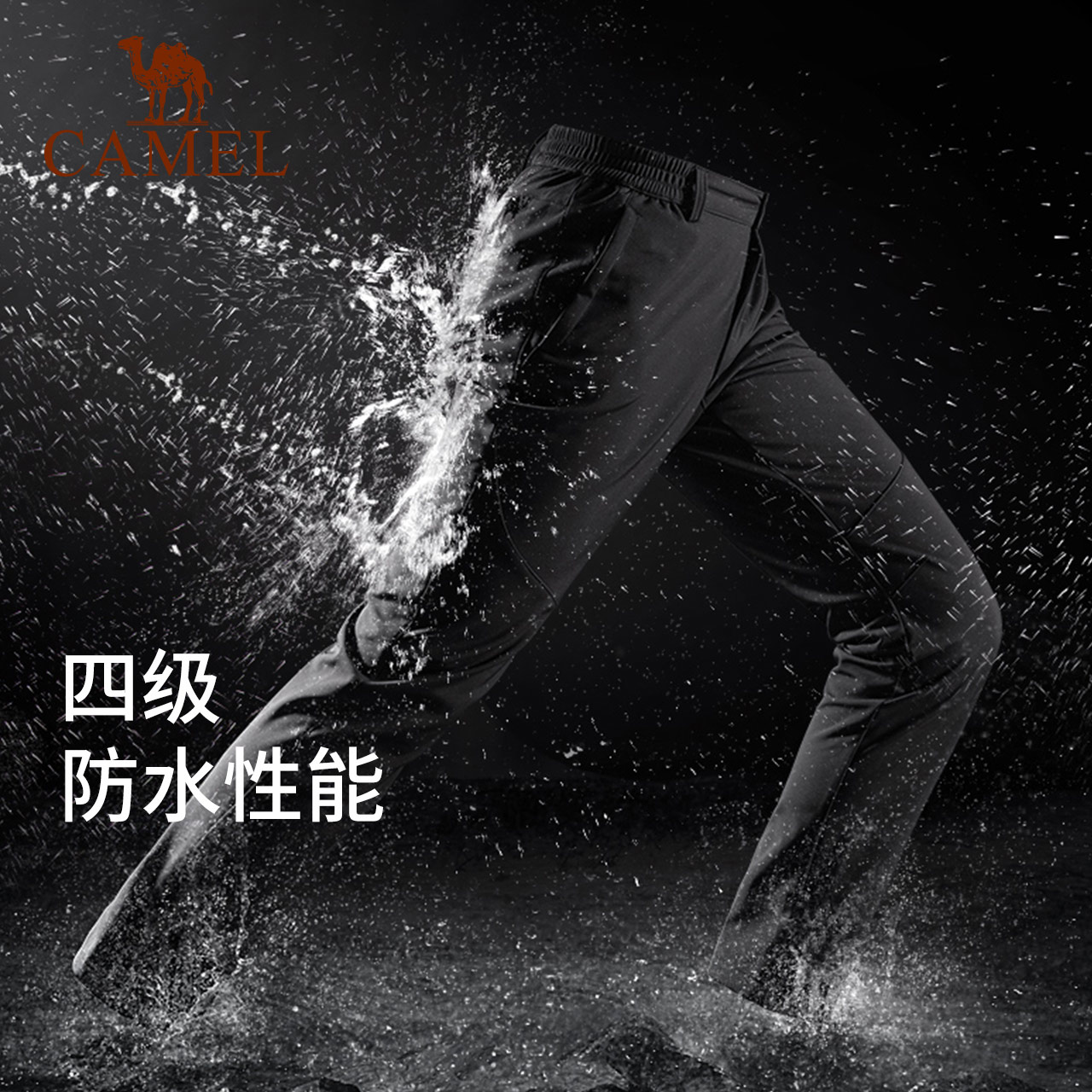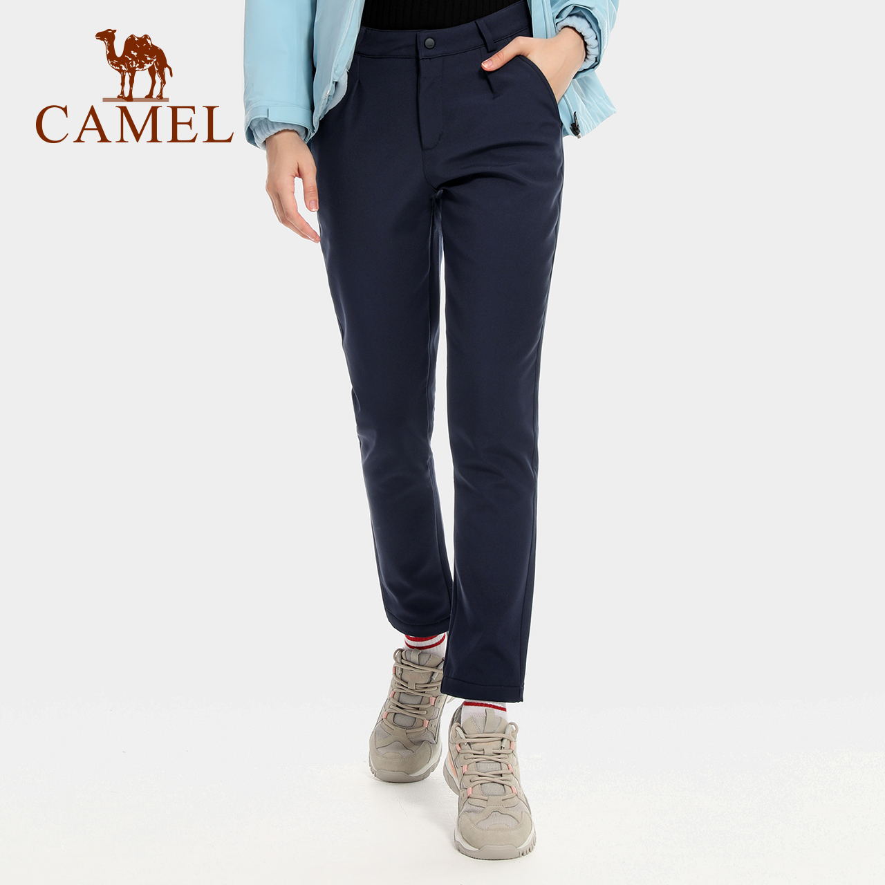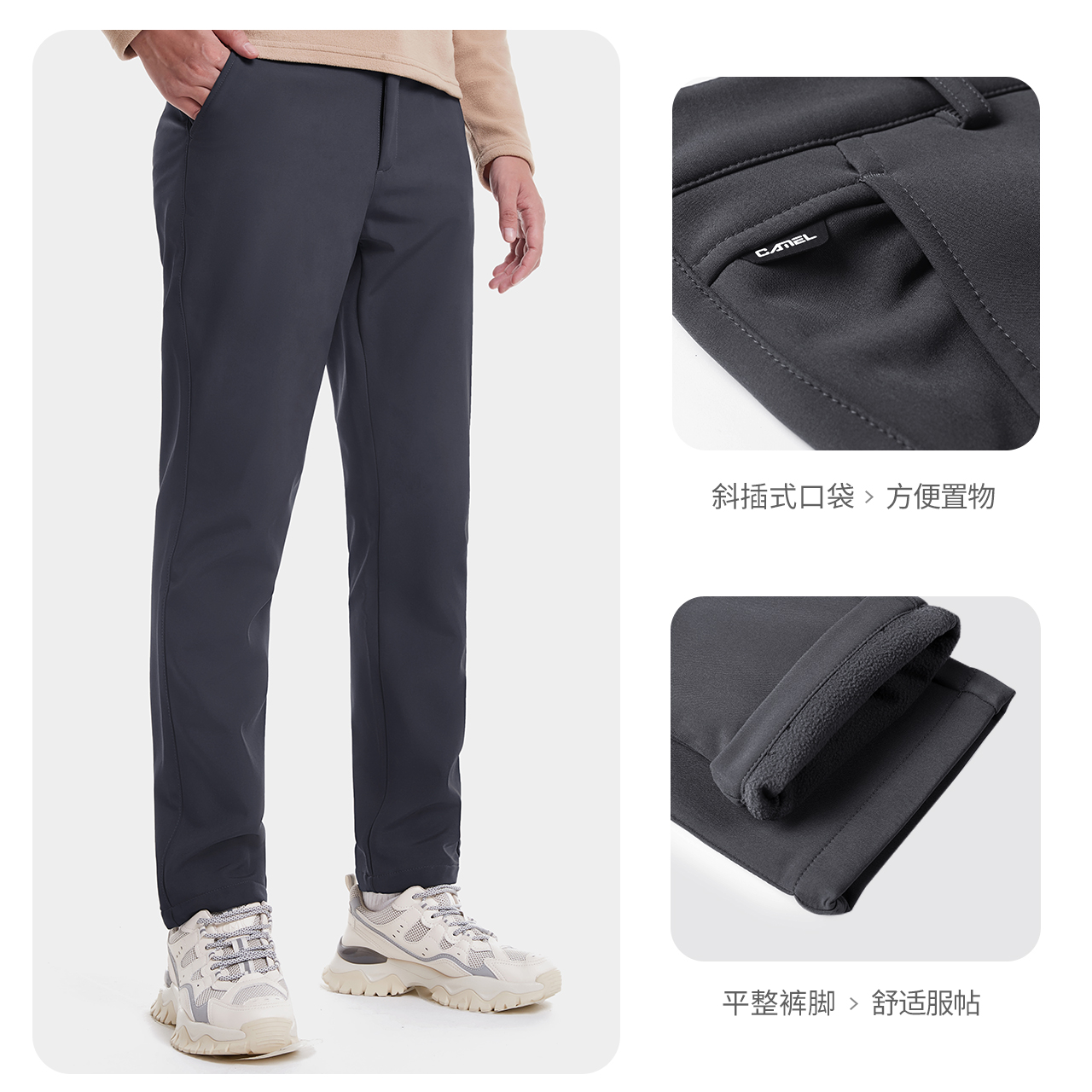 Camel outdoor soft shell pants men winter plus fleece warm windproof pants thick waterproof storm pants ski pants women's model