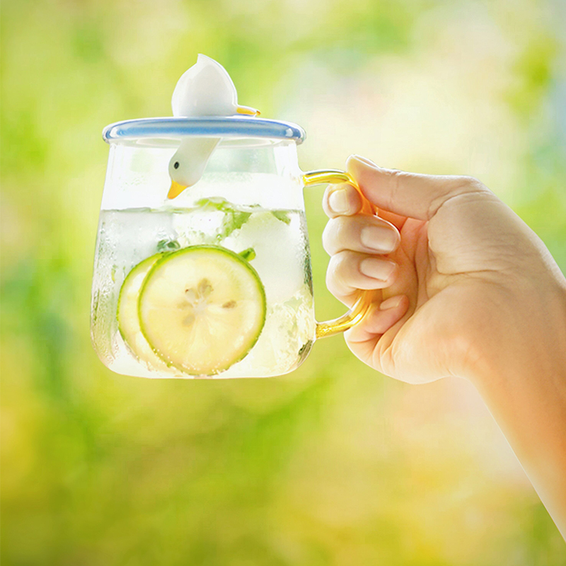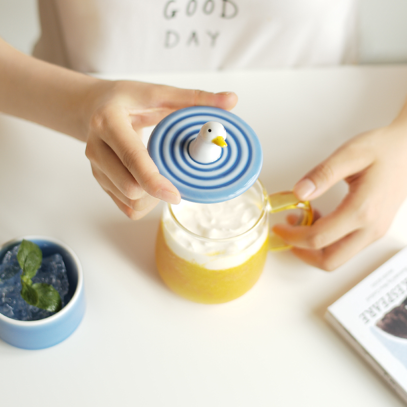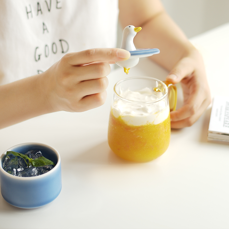 Park Fang San shallow Pottery Society Super cute hard work duck glass Couple mug Children's office water cup
