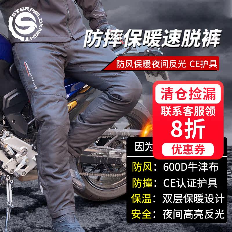 Four seasons locomotive riding pants speed off outside wearing windproof and warm pants quickly removed offline car Men's anti-fall anti-rain hood pants