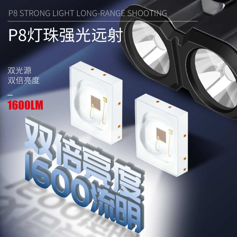 Double P8 lamp bead 5-8 hours life with charging treasure function Dual XPG lamp bead 4-6 hours life with charging treasure function