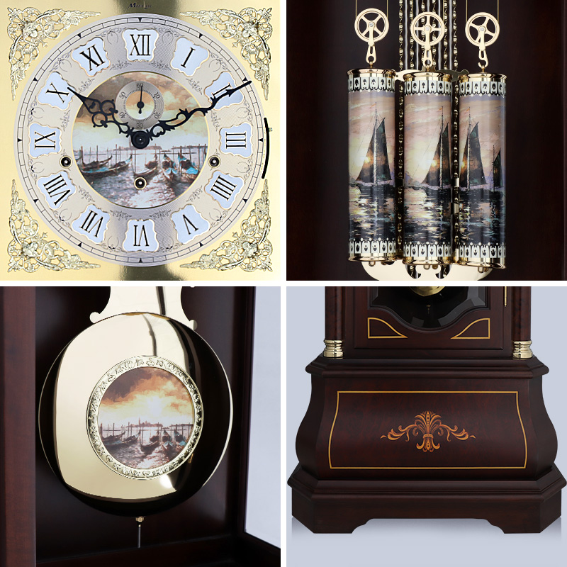 Hemler movement floor clock Living room household table clock Luxury European-style sitting clock Solid wood vintage mechanical clock ornaments