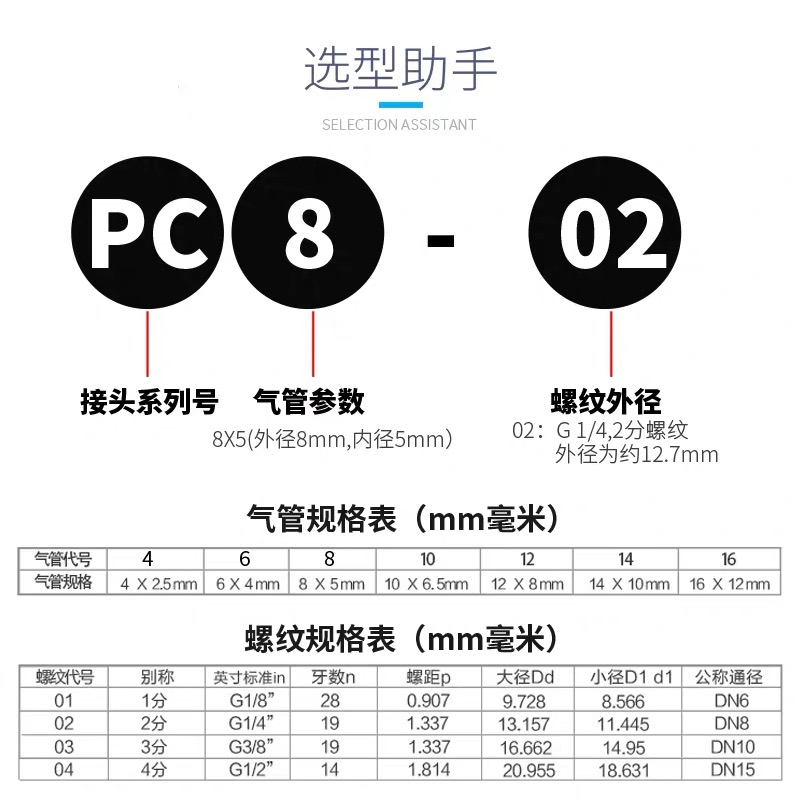 Pneumatic trachea PC8-02 quick plug connector PC4-M5 6-01PC10-03 12-04 thread straight 16