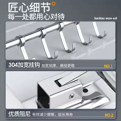 Non-perforated towel rack Stainless steel 304 bath towel rack Powder room bathroom shelf Bathroom hardware pendant set