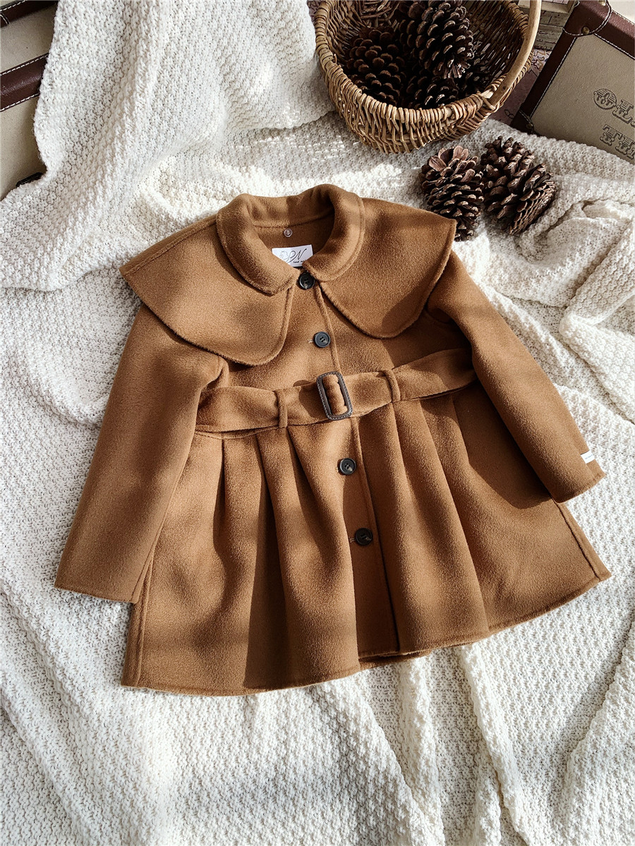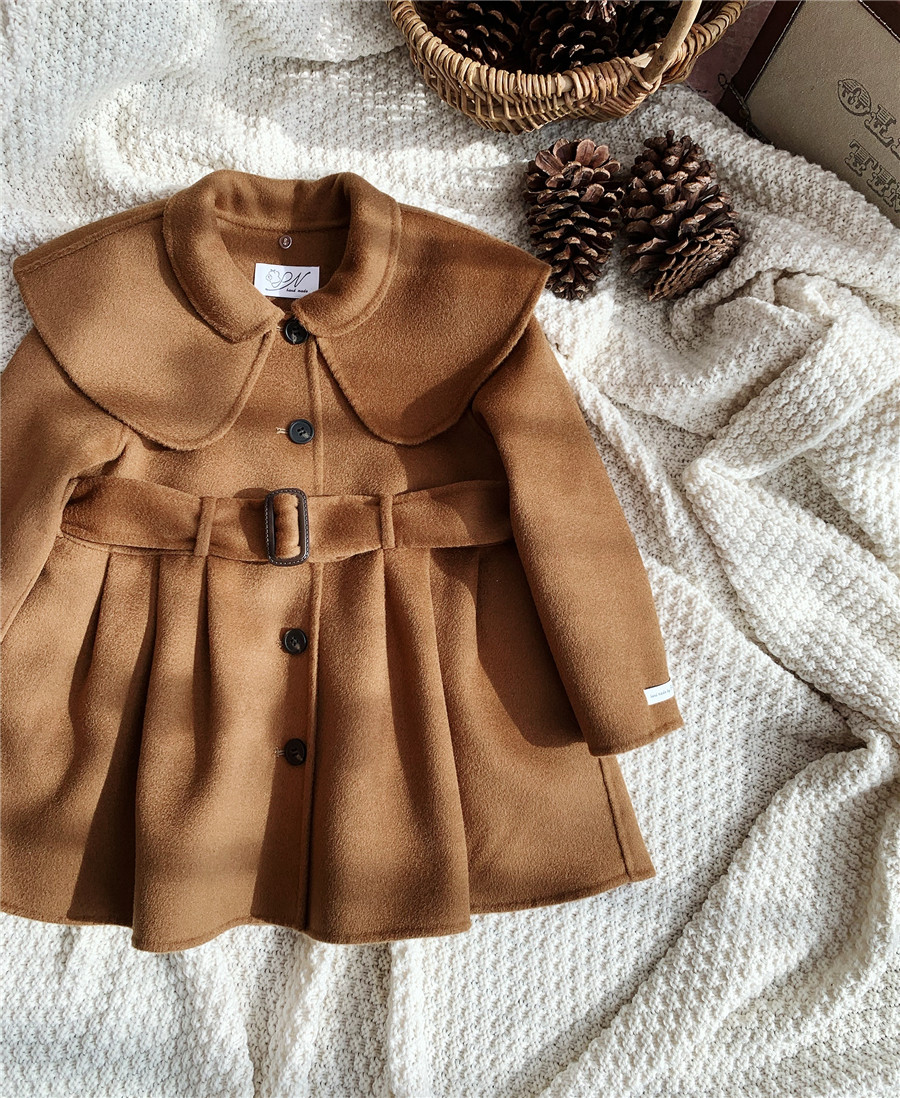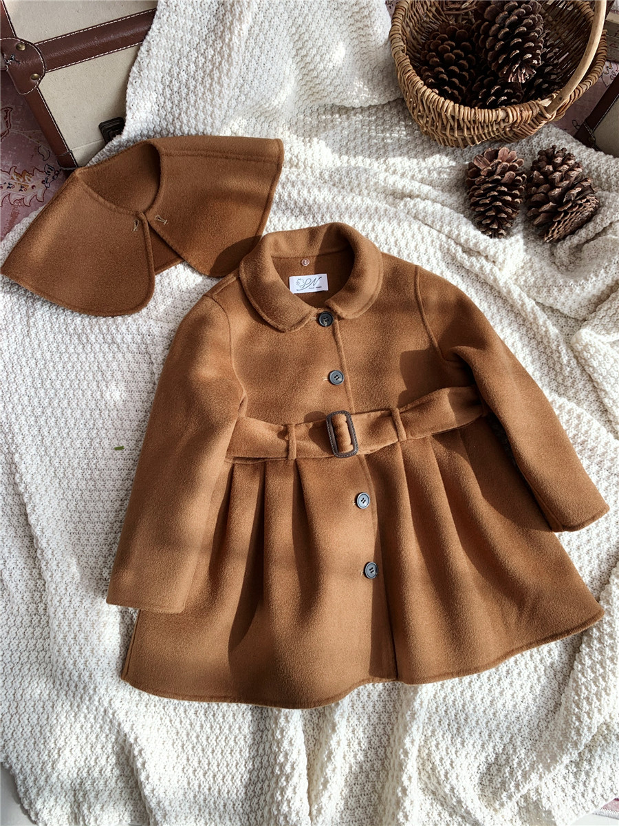 Spot Petit Nez] Retro 100 wool double-sided fleece hand-stitched children's shawl belt coat