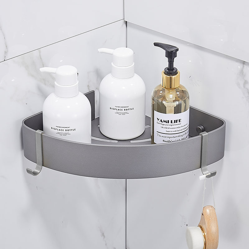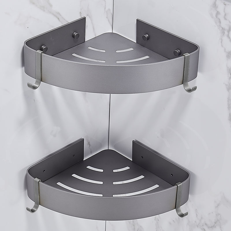 Gun gray toilet shelving bathroom tripod shower gel storage space aluminum shower room corner basket no holes