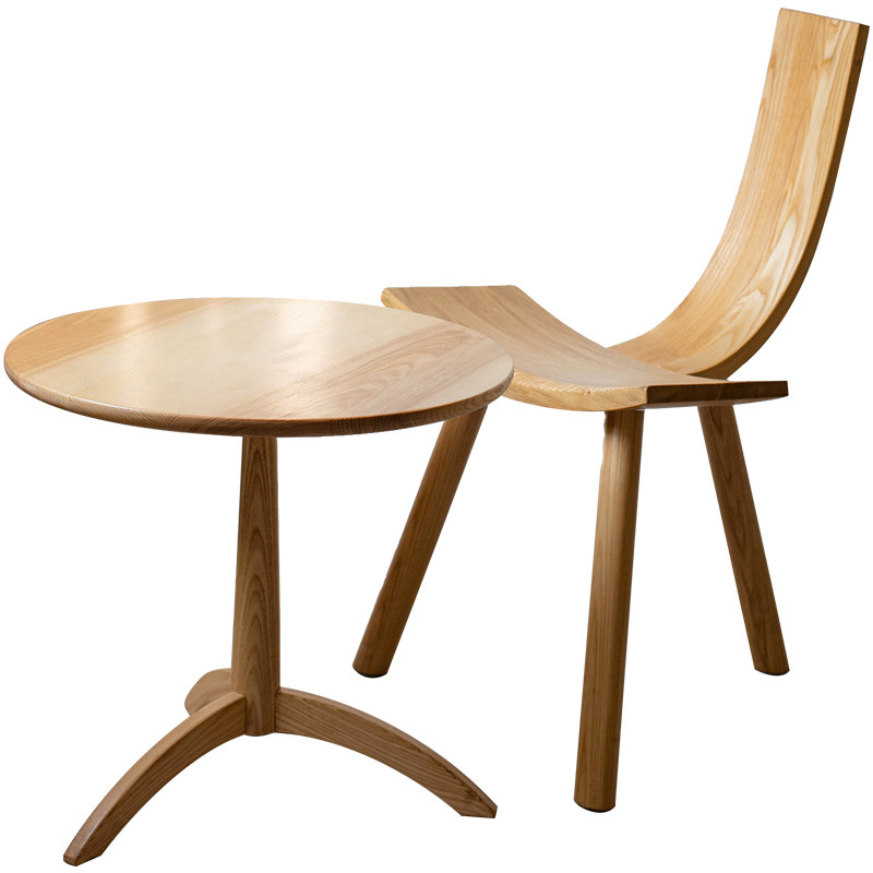 Culvert White Wax Solid Wood Round Table Backrest U Shaped Chair Modern Minima Home Balcony Coffee Tea Table Creative Furniture