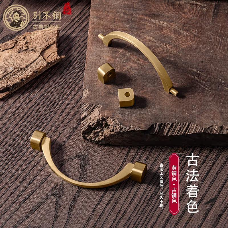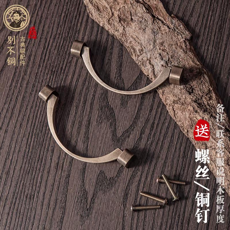 Imitation ancient pure copper Yuanbao handle old solid wood traditional Chinese medicine cabinet handle red wood furniture drawer hardware pull button accessories