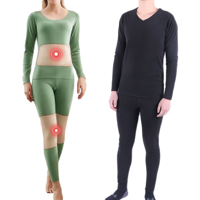 Men and women couple models winter heating silk patch heating clothing seamless plus velvet autumn clothes sanitary pants set