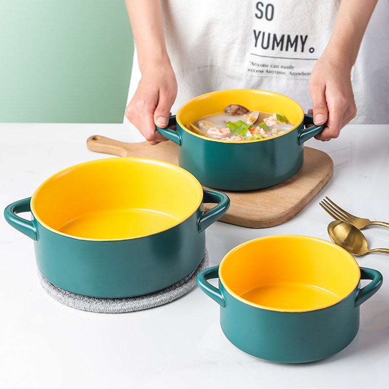 Binaural plate plate creative net red western food soup plate deep plate household ceramic Nordic large soup bowl basin salad plate