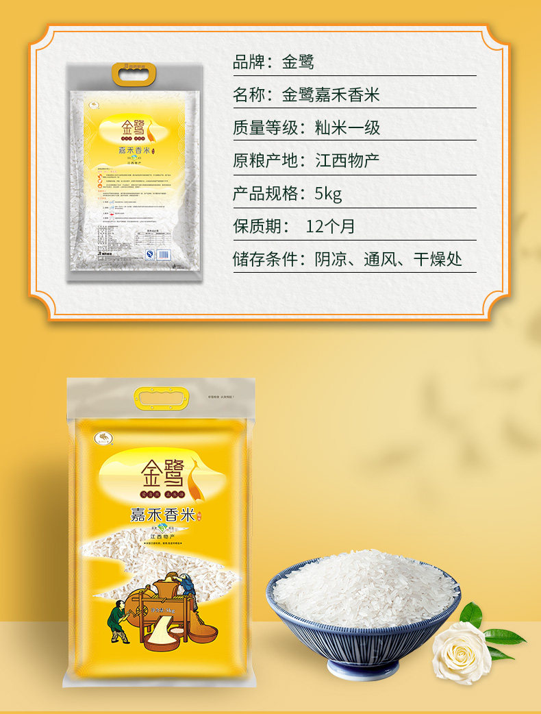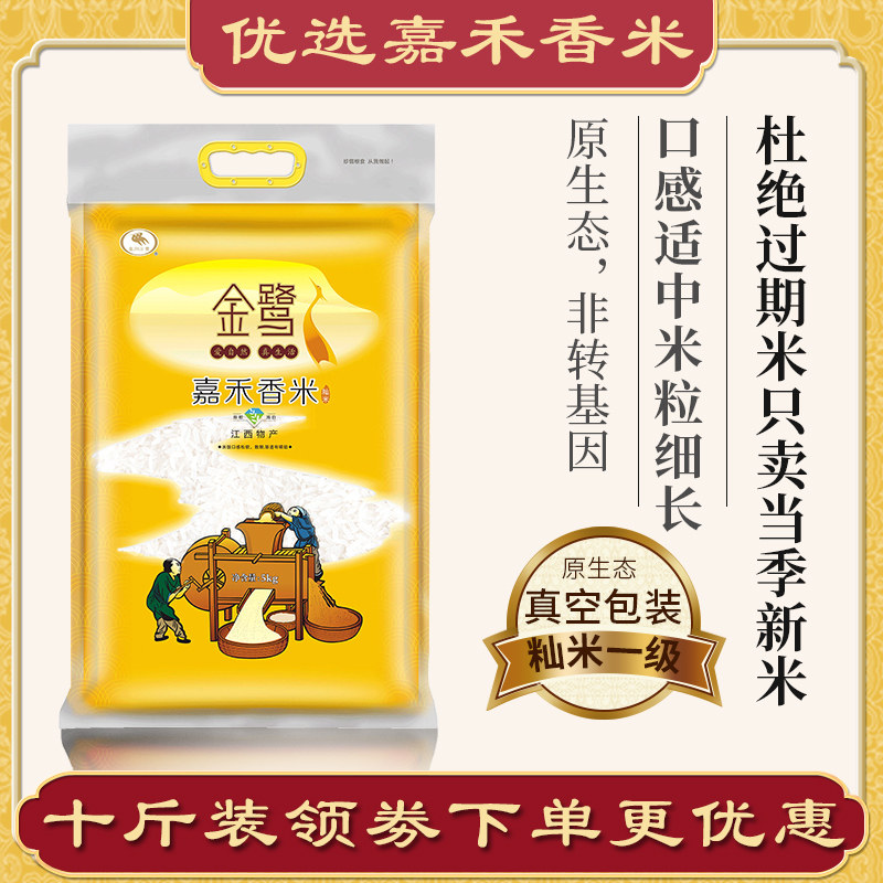 Jinlu Jiahe 22 years first grade 5kg bag vacuum Jiangxi high quality long grain rice 10 pounds of indica rice