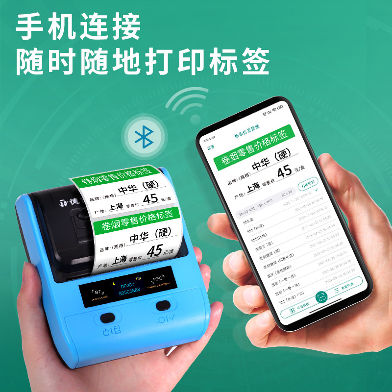 De Tong DP30 Tobacco Labelling Machine Supermarket Price Barcode Convenience Store Cigarette Cardboard Sticker Adhesive Bluetooth Handheld Small Portable Machine Special Thermal Printer for Tobacco Bureau