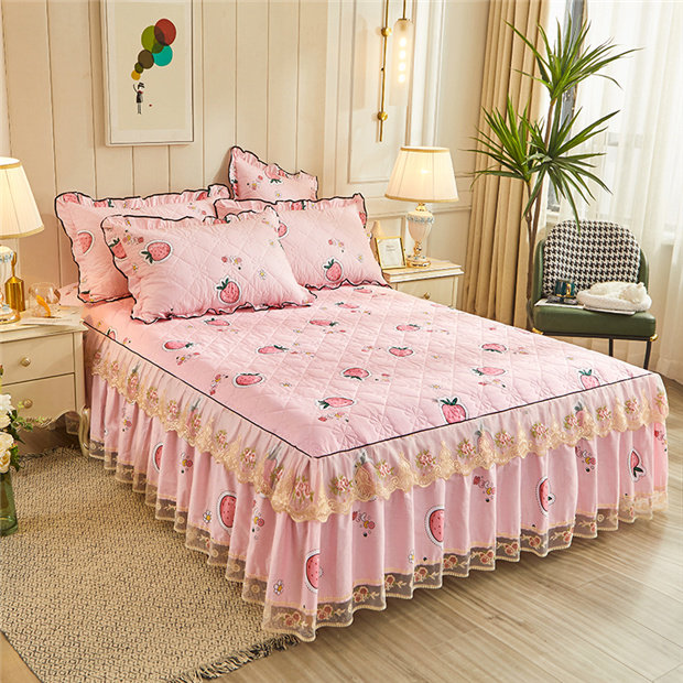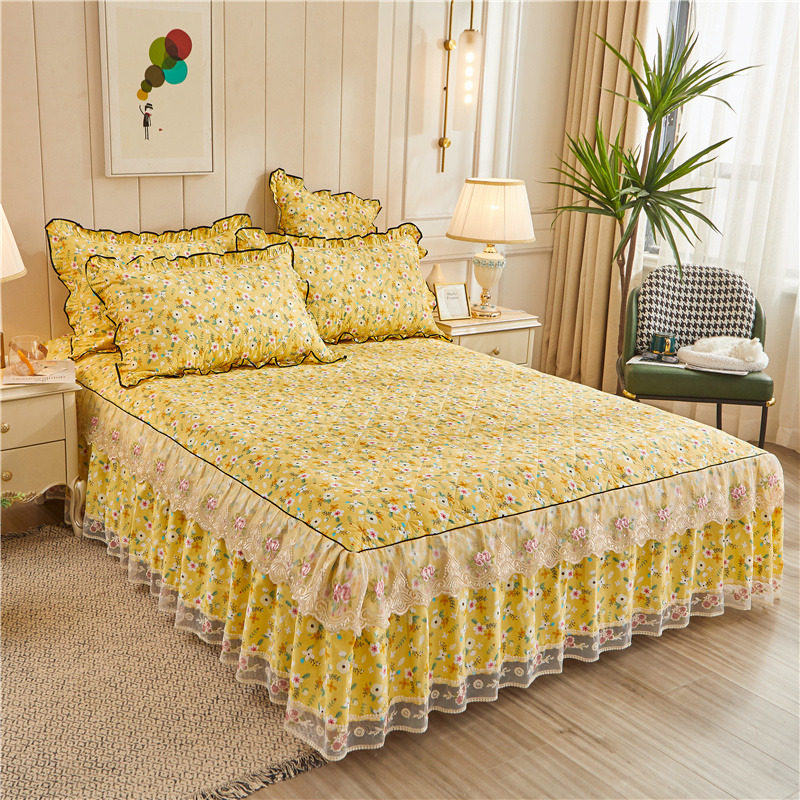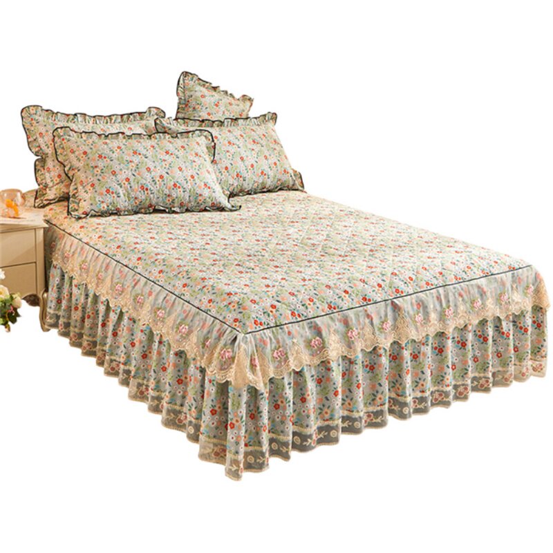All-cotton thickened laminated cotton bed dress lace lace bedcover pure cotton small crummy bed protective sleeve dust-proof flower single piece-Taobao