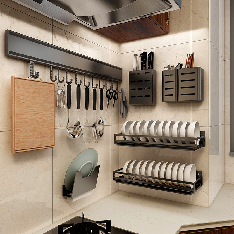 Cutting board rack lid rack (perforated-free mounting) Classic black 30cm-No rod Classic black 40cm-No rod Classic black 50cm-No rod Classic black 60cm-No rod warp