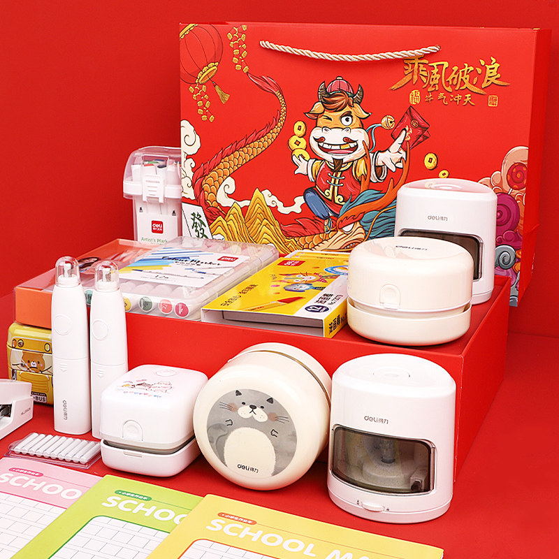 Deli Desktop Cleaner Student With Electric Charging Style Eraser Kids Cleaner Desk Micro USB Cleaner Dust Keyboard Big Suction New Year Stationery Set Gift Box Gift