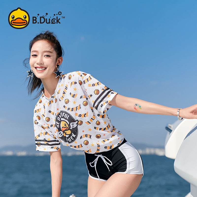 B. Duck little yellow duck split swimsuit ladies three-piece set 2021 new hot spring conservative look thin belly swimsuit